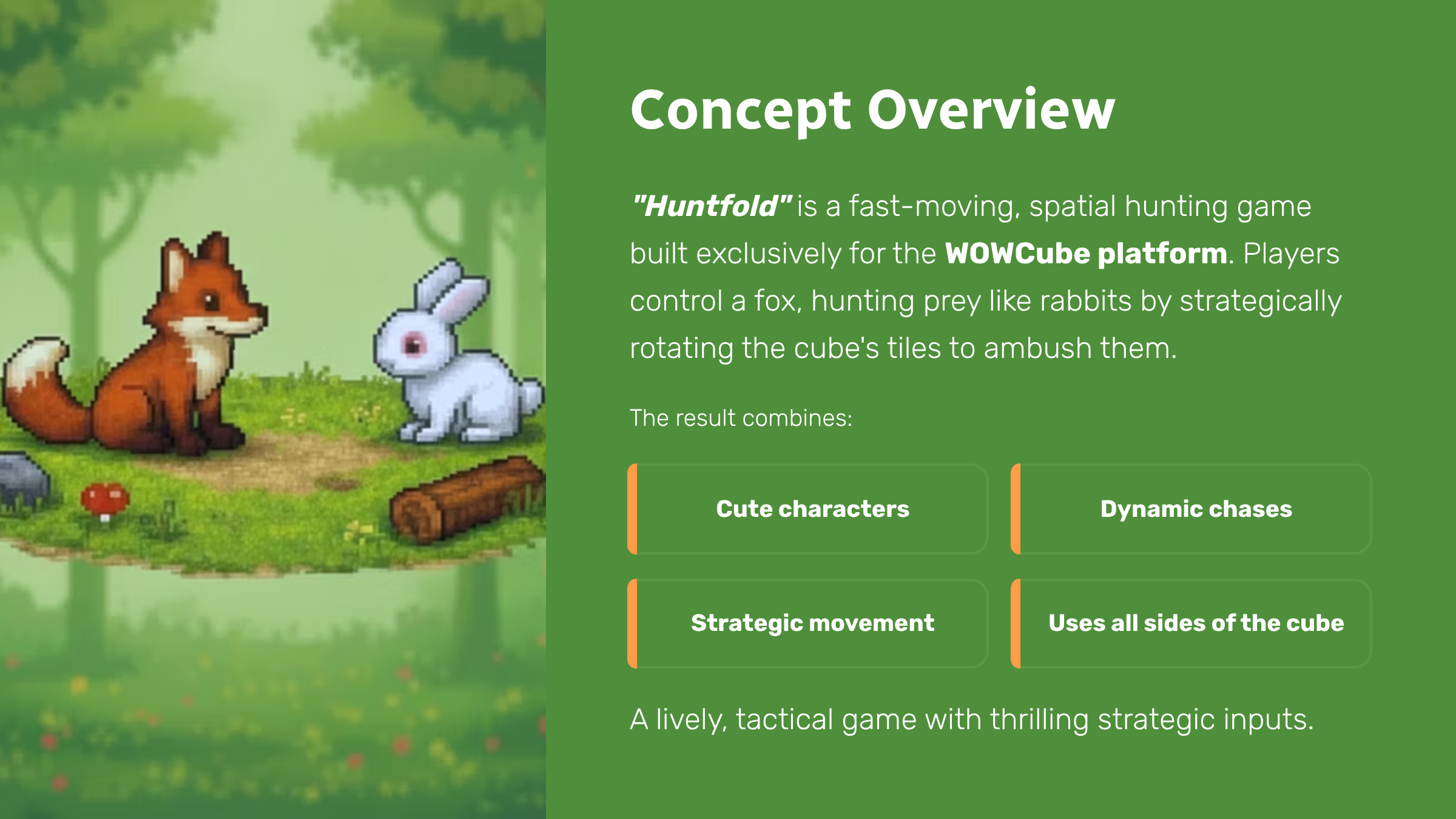 Here is 3 pitch presentations I produced for 3 game ideas I’ve conceptualized and designed for the WOWCube.